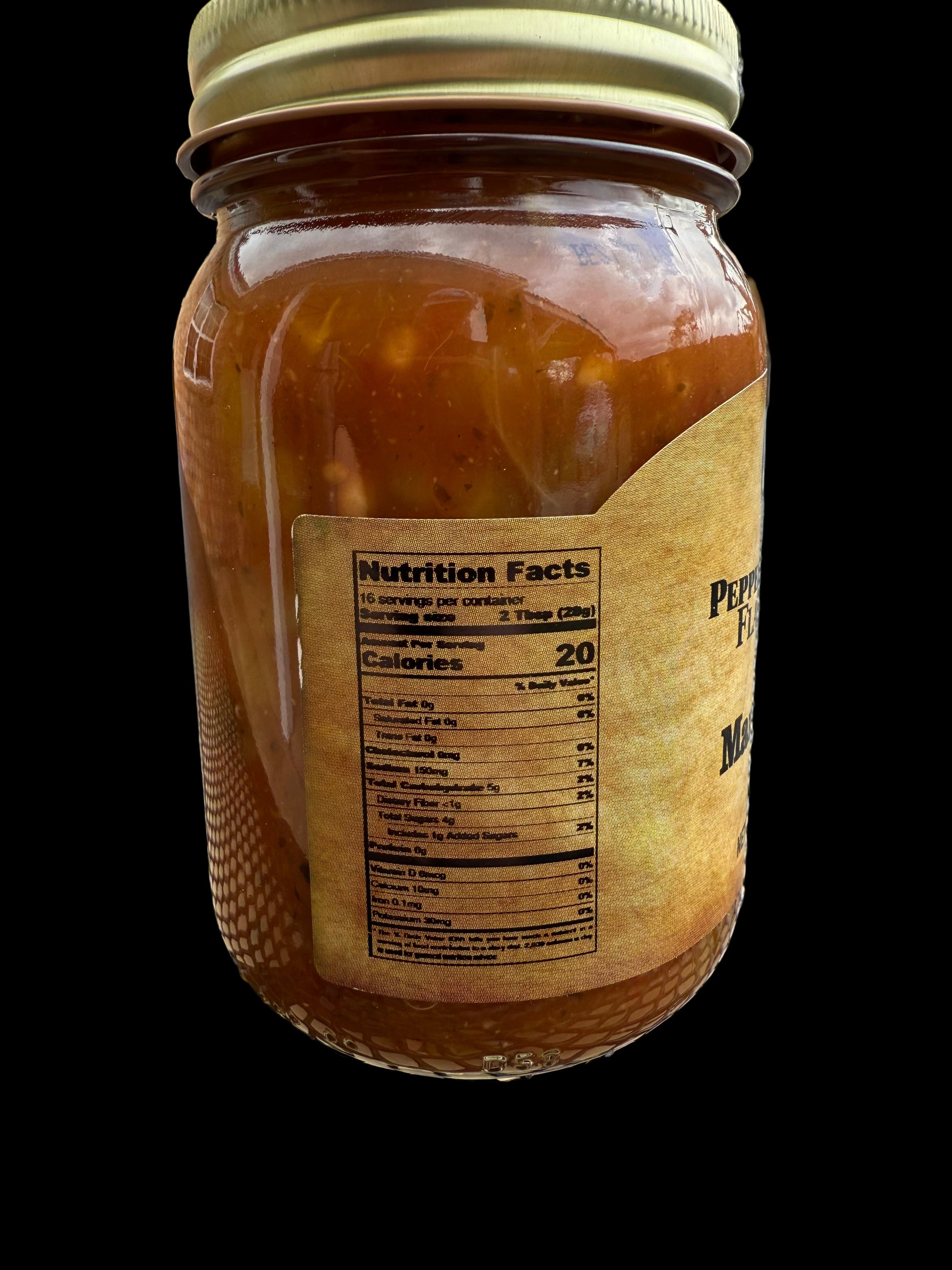 Pepper Belly Pete’s Delicious Medium Heat Mango Lime Salsa. 16 ounce