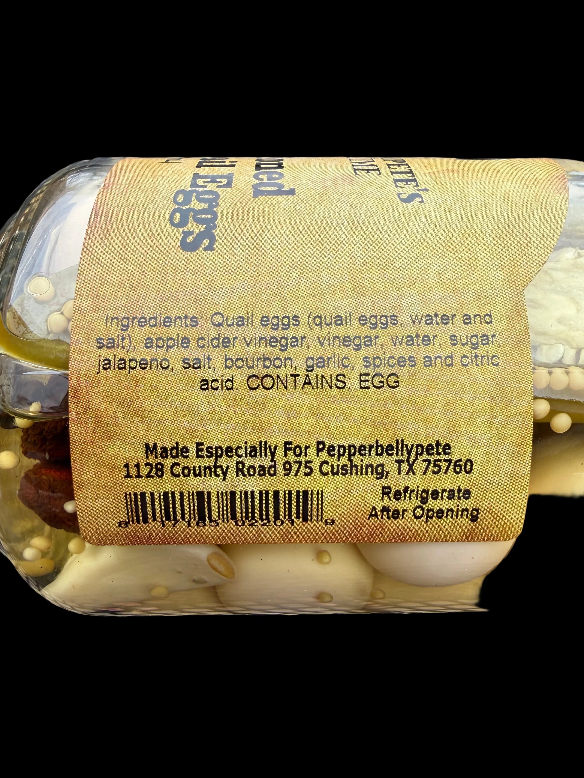 Pepper Belly Pete’s Delicious 16 ounce Old Fashioned Bourbon Quail Eggs.